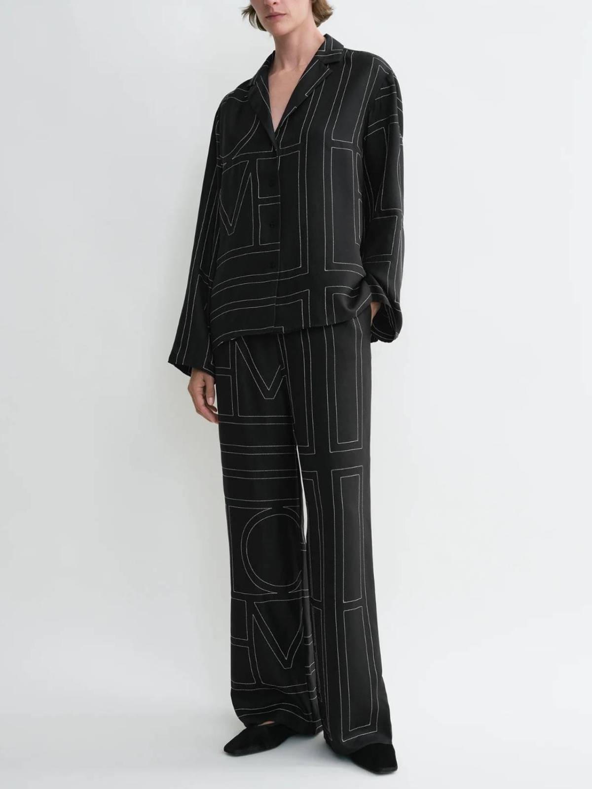 Monogram Silk PJ Top Black