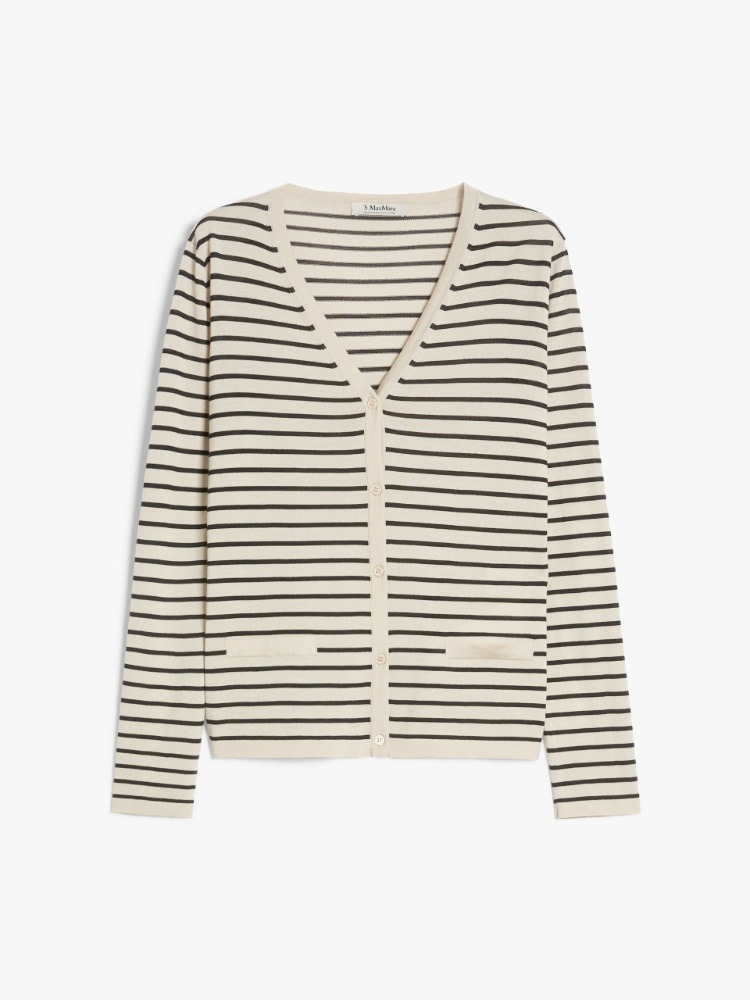 Triibuline kardigan ja mustad teksapüksid loovad mugava ja stiilse põhja, mida täiustavad tumepruun kott ja punutud baleriinad, lisades lihtsale outfitile elegantsi ja tekstuuri. Riietuse viimistleb pruun nahast vöö, mis seob kogu komplekti harmooniliselt kokku.
