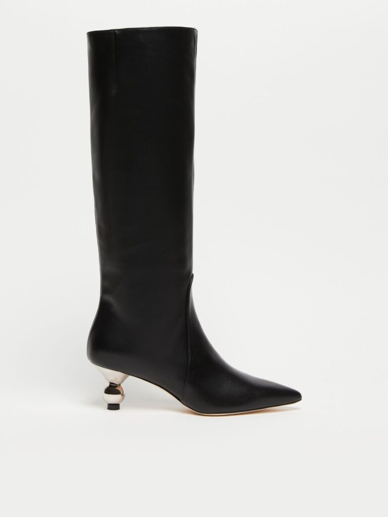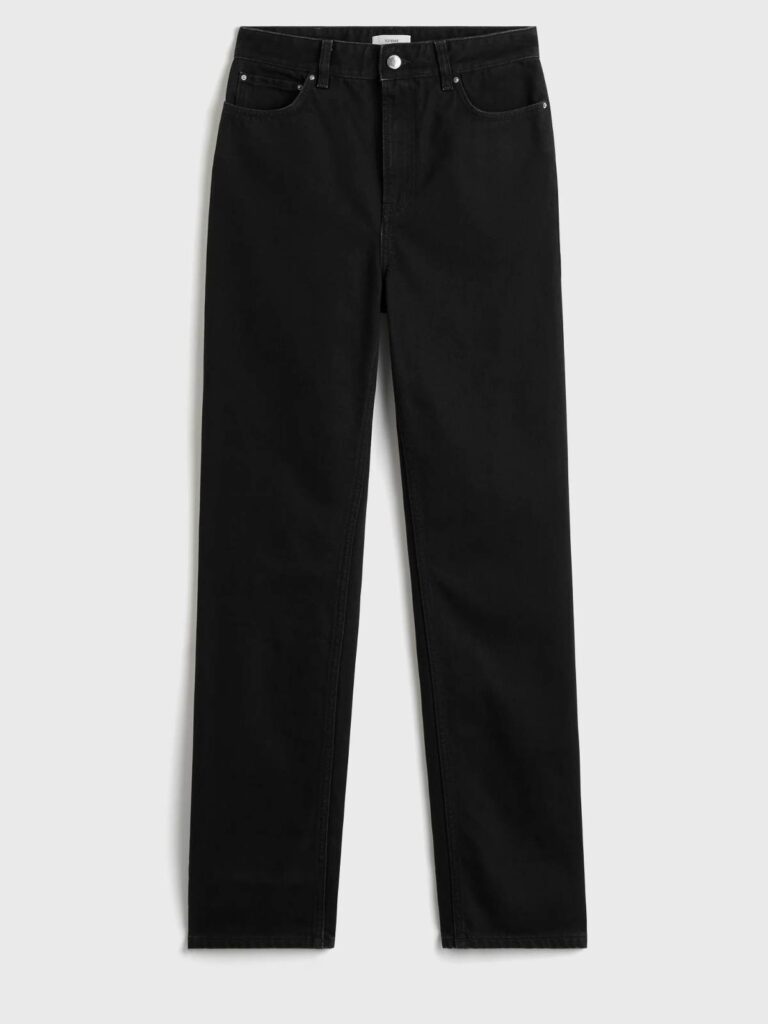 Must kootud topp loob outfitile puhta ja modernse vundamendi, mida täiendavad klassikalised sirge lõikega püksid. Monokromaatiline palett jätkub struktureeritud koti, vöö ja luksuslike mokassiinidega. Tonaalsele riietusele lisab peene viimistluse hele mantel, mis loob kontrasti ja annab tervikule õhulise ja ajatult šiki meeleolu.
