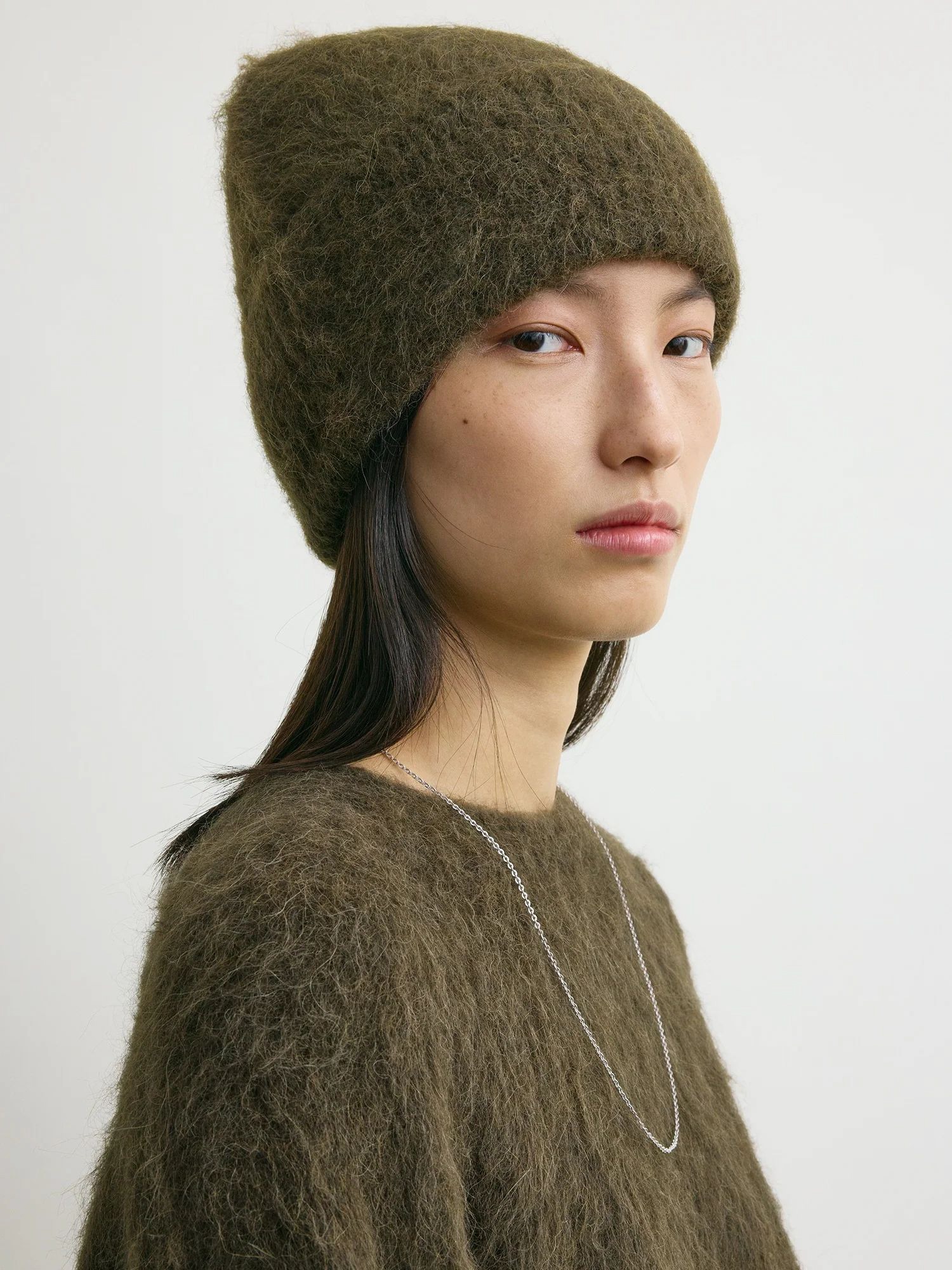 Toteme Alpaca Knit Beanie karvane talvemüts lisab külma hooaega lõputult stiilsust, mugavust ja soojust - alpakavillasegusest materjalist müts on karvase tekstuuriga ning sellel on regueeritav üles- ja allakeeratav äär.