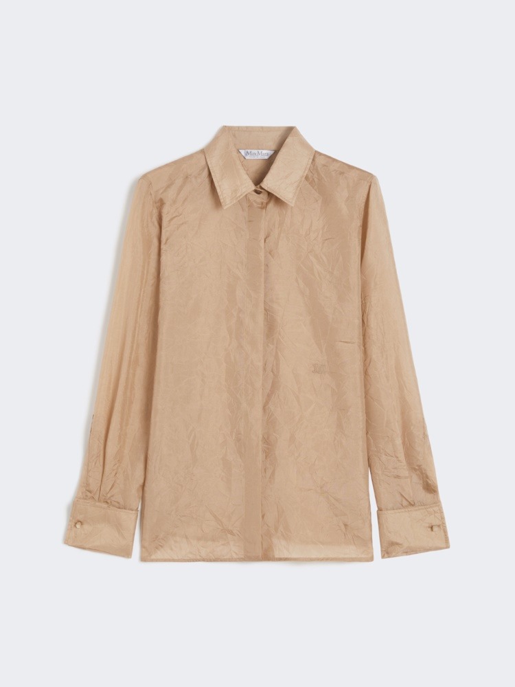Max Mara Eloisa pluus on ülimalt luksuslik ja stiilne - siidikangast pluusil on meestemoest inspireeritud tegumood, särgikrae, pikad varrukad, peidetud nööbid, ümar alläär ja küljelõhikud. Pluusi vasakut serva kaunistab väike tikitud monogramm.