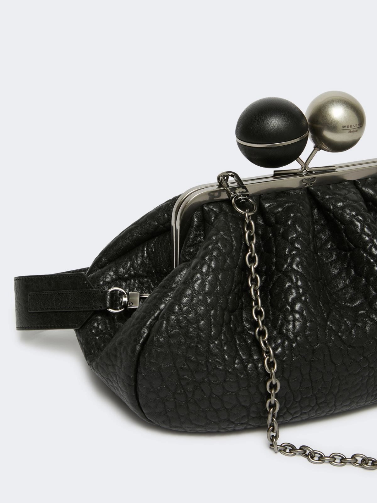 Weekend Max Mara Lecito kott võlub selle stiilse ja praktilise disainiga - keskmise suurusega Pasticcino-kott on valmistatud tekstuursest nahast ning sellel on kangast vooder. Kotil on kaks eemaldatavat õlarihma ning ikooniline kuulikestega kinnitusmehhanism.