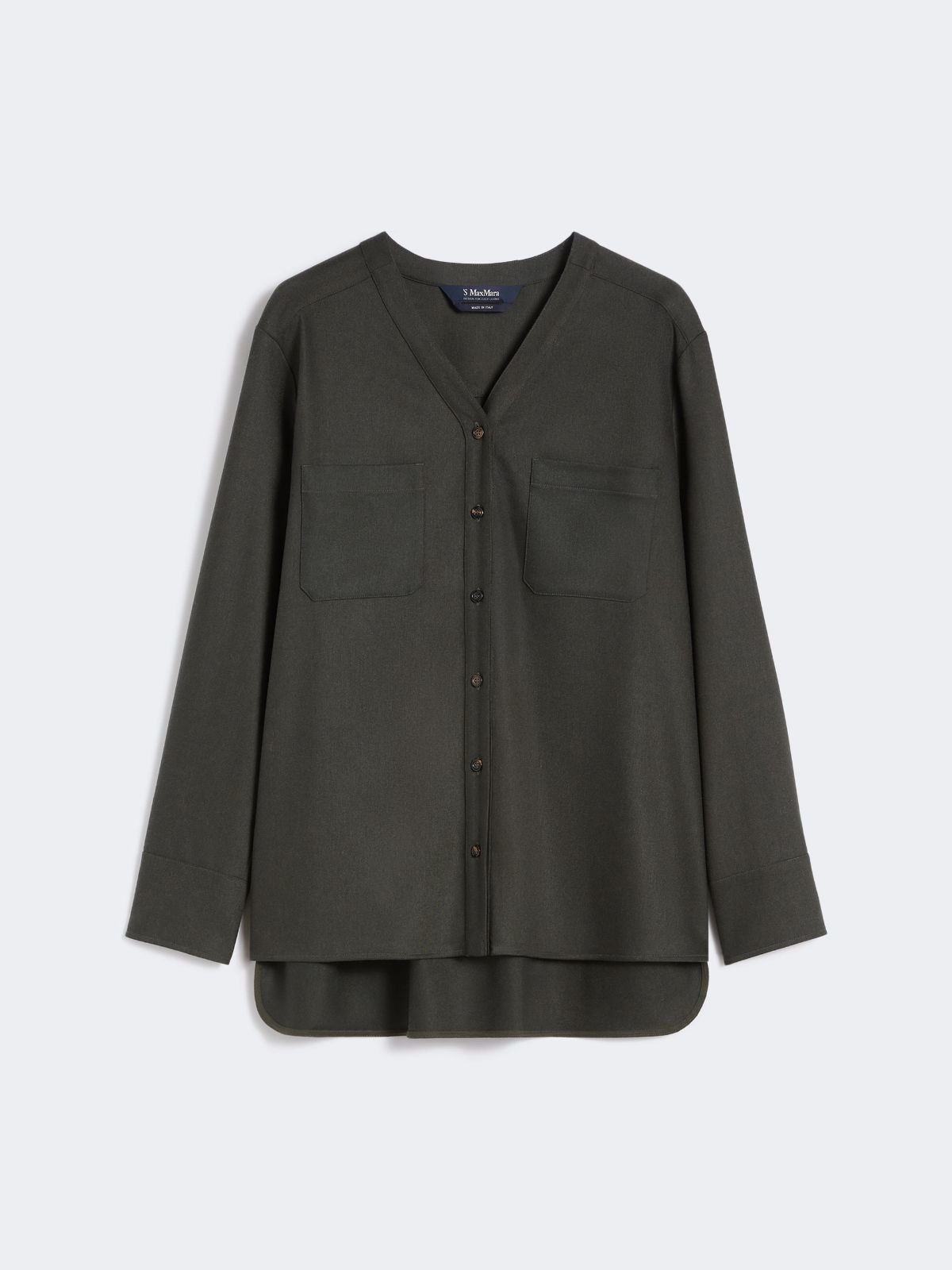 'S Max Mara Nine villane särk on mitmekülgselt stiilne täiendus sügistalvisesse garderoobi - villasest kangast särgil on vabalt langev tegumood, V-kaelus, pikad varrukad, nööbid ja rinnataskud.