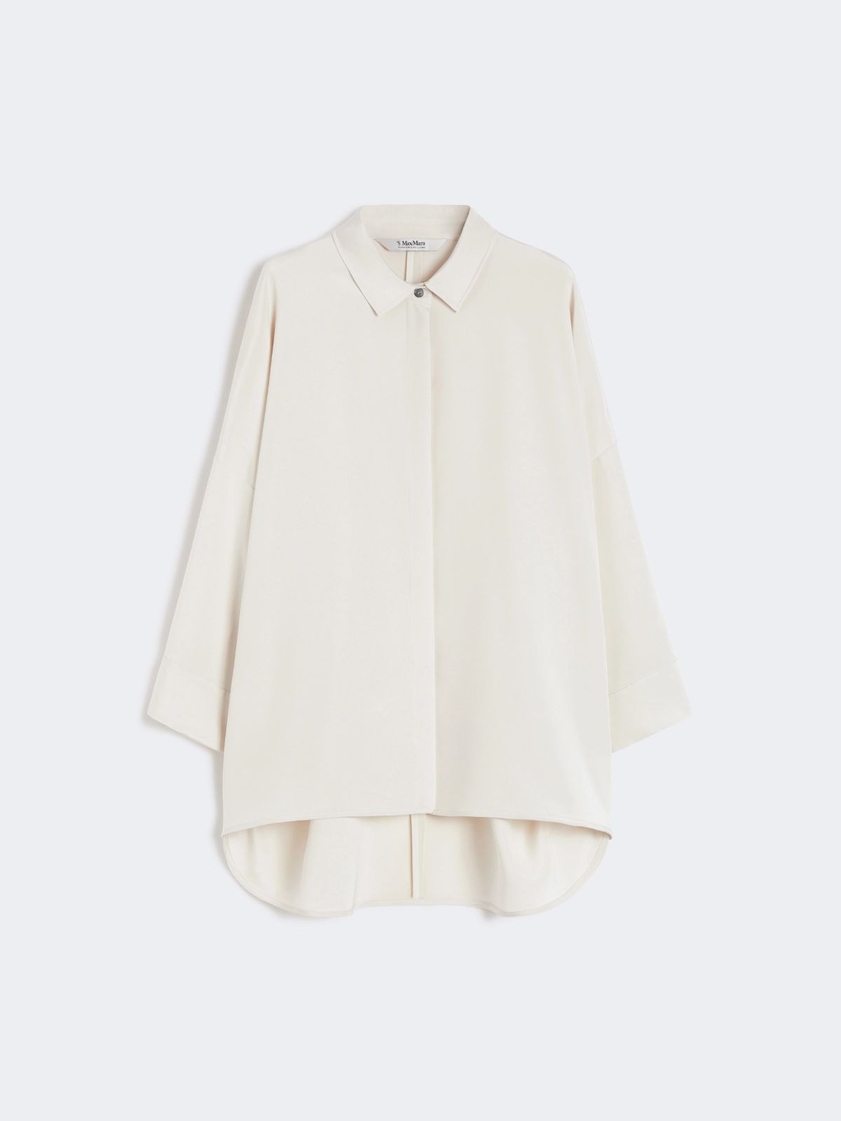 'S Max Mara Odeon särk on luksuslik ja ajatult stiilne - siidisegusest kangast särgil on mugav alt laienev tegumood, allakeeratud krae, pikad varrukad, peidetud nööbid, nööbistatud käised ja ümar alläär.
