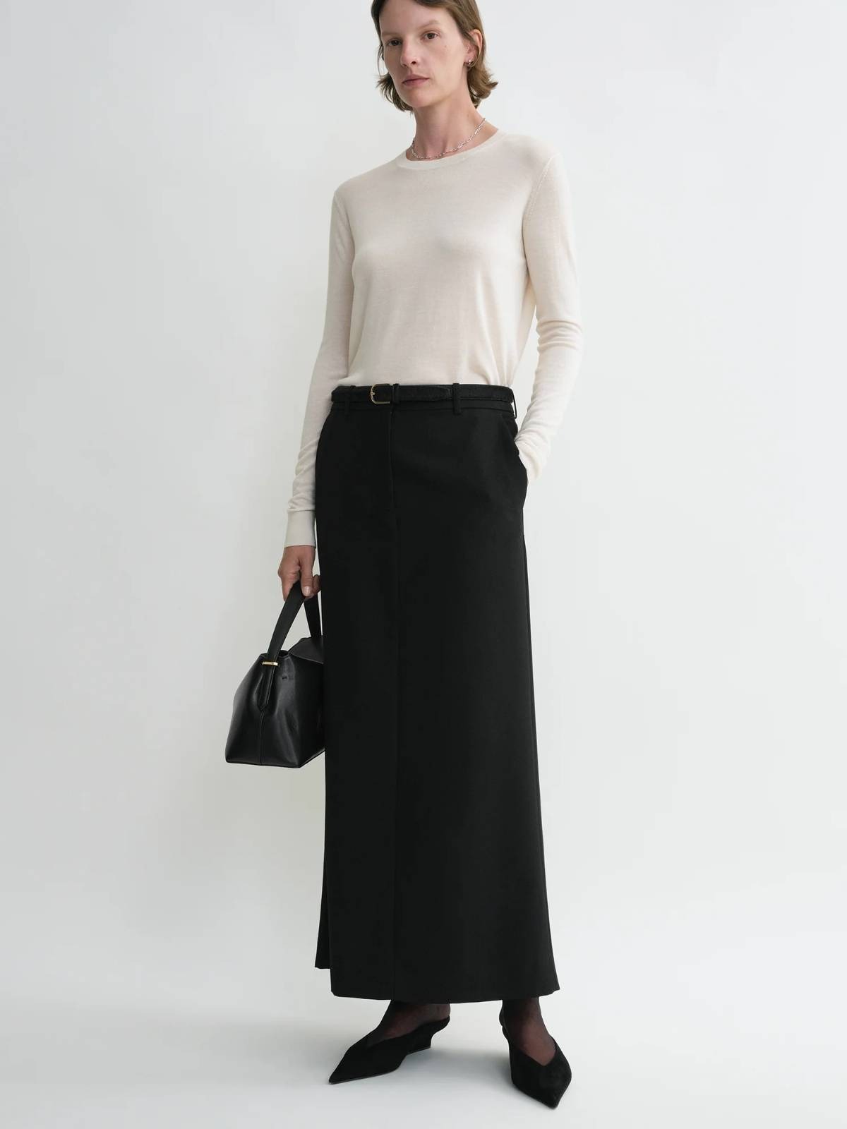 • TOTEME Spring 26 x Maximalist. Sädelus ja graafilised proportsioonid lisavad pidulikele koosviibimistele luksuslikkust, tasakaalustades samal ajal minimalistlikke siluette.